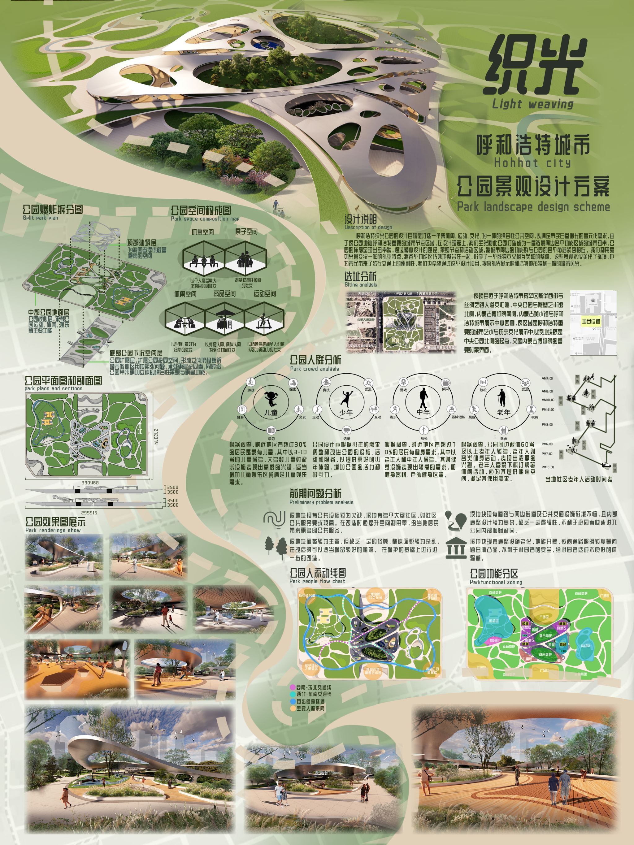 环境设计《“织光”----呼和浩特城市公园景观设计及模型制作1》,于蕴泽,指导教师:于洁