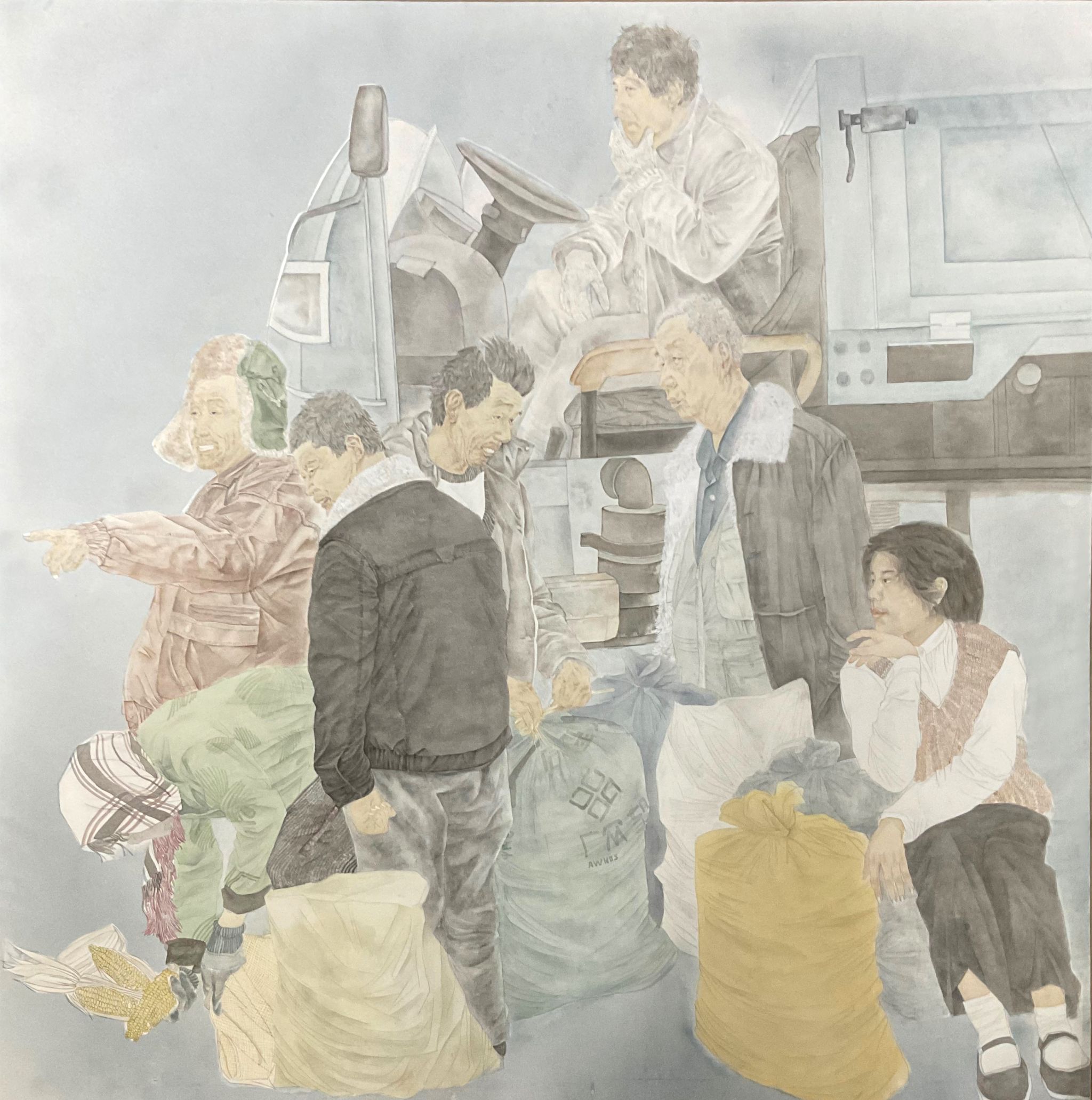 中国画《乡野晨韵》,张潇如,200cmx200cm指导教师:陆春莉